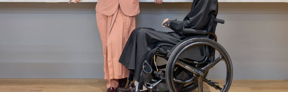 ベルトにプリーツスカートがついているため、お手持ちのパンツやスカートに重ねて使用することができます。座位を基本の姿勢とされる方や車椅子ユーザーの方も、座ったままウエスト部分に装着することでスカートに見える着用が可能です。