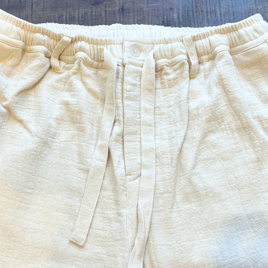Matched with the same thick cotton gauze jacket, it creates a harmonious outfit—bringing both ease and understated elegance, at home or on the go.