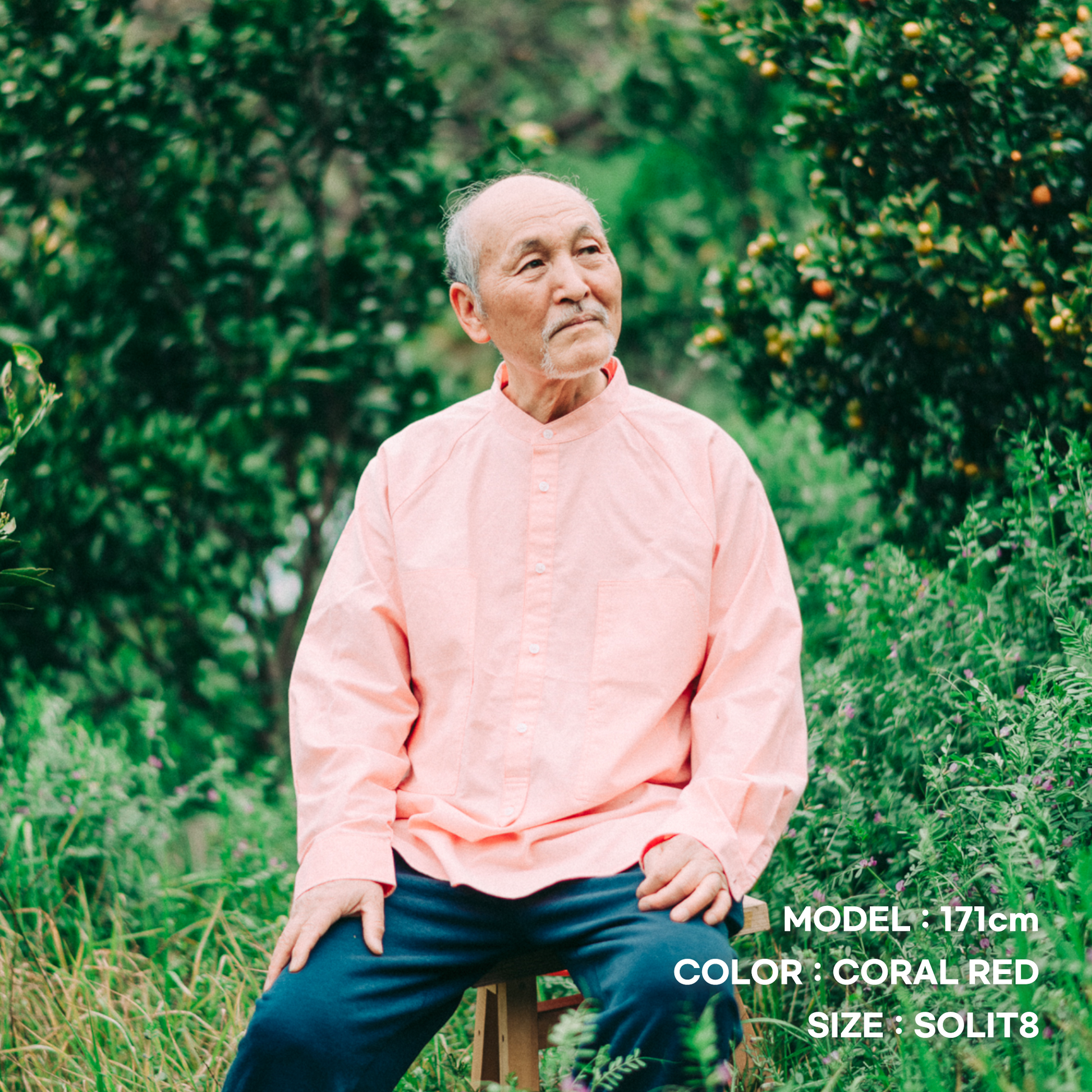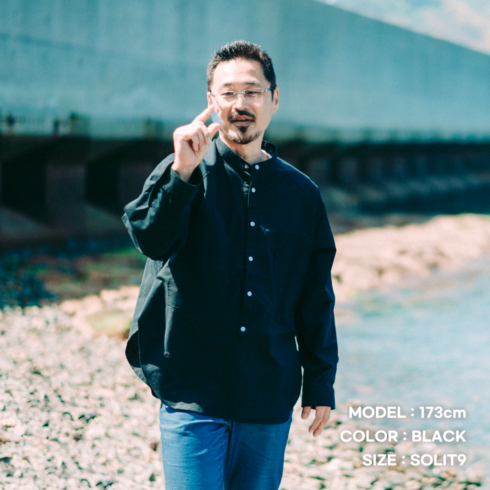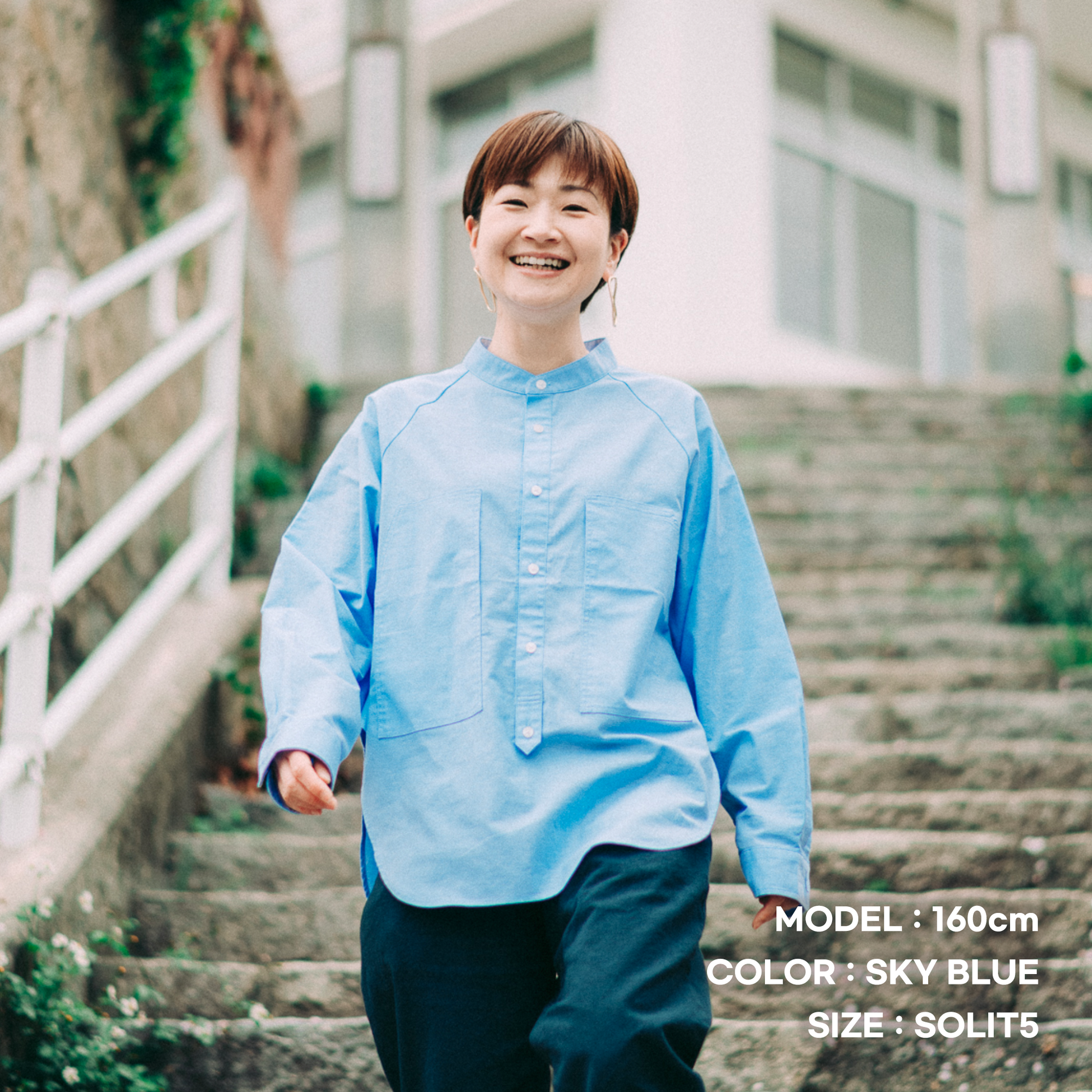 Instead of opening in the front, this shirt is designed to be worn as if worn over the head by unbuttoning the buttons up to the chest. It is designed so that people with limited shoulder range of motion or those who have difficulty with fine movements can easily put it on and take it off.