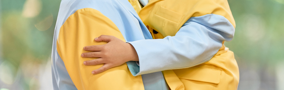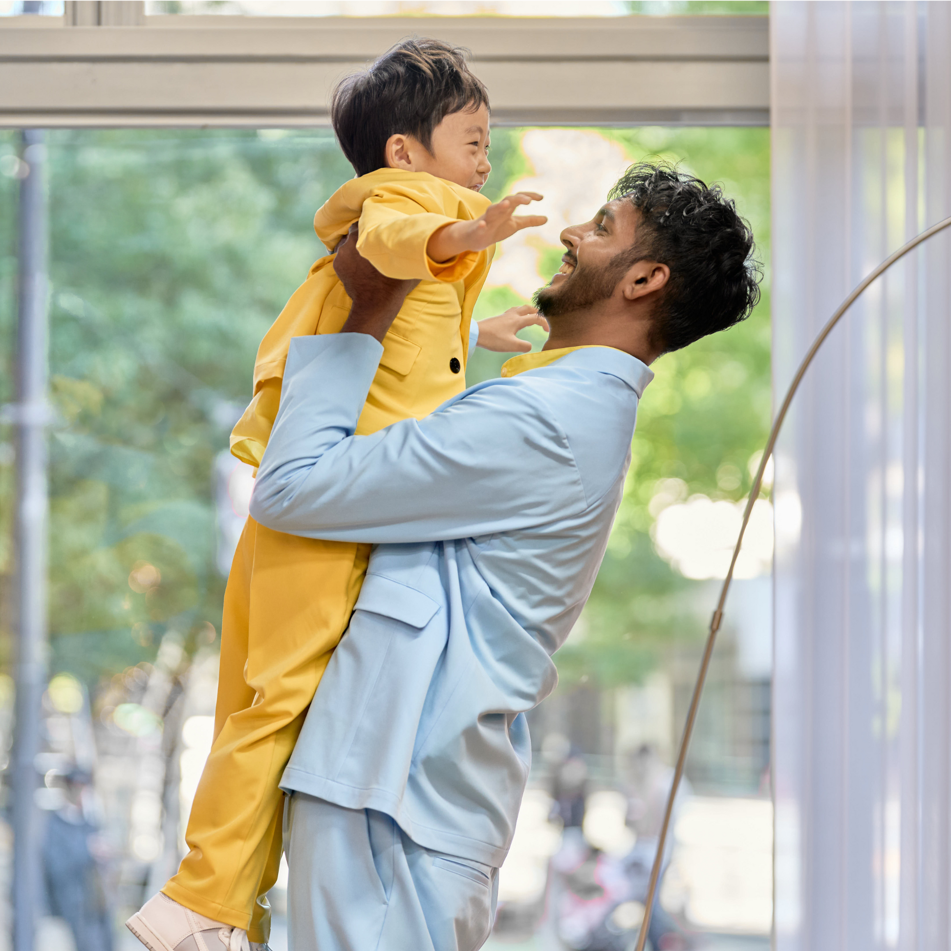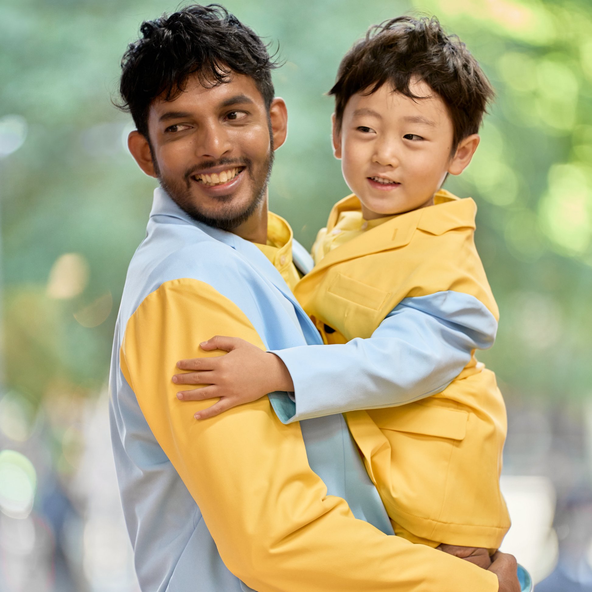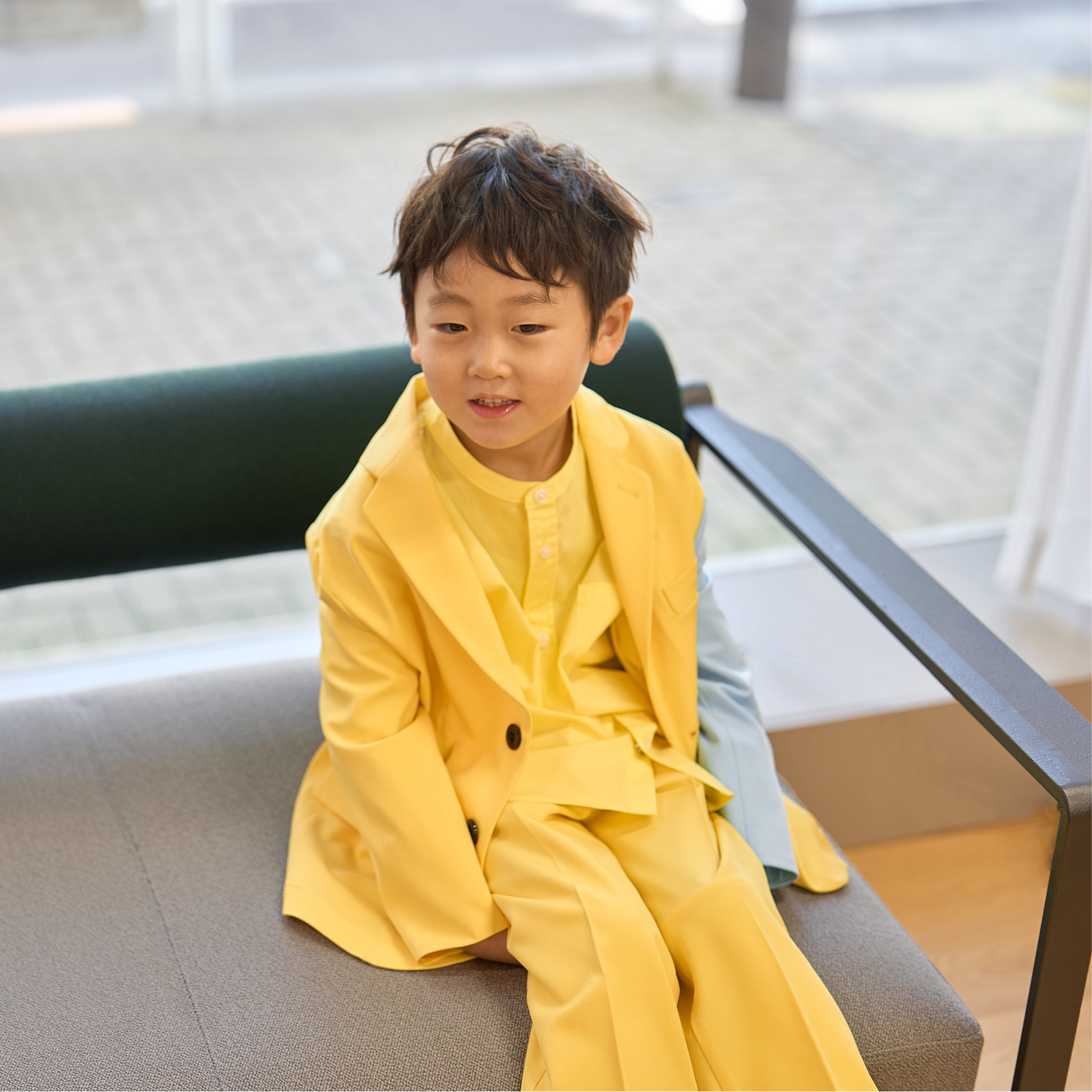 固定化された家族像から脱却し、血縁関係では無い家族やパートナーシップなど、もっと「私たちの繋がりは自由であっていい」と伝えるペアルックを前提に作りました。セットアップでの販売ではありますが、それぞれのアイテムを個別で着用いただいたり、二人でシェアしていただくことも可能です。